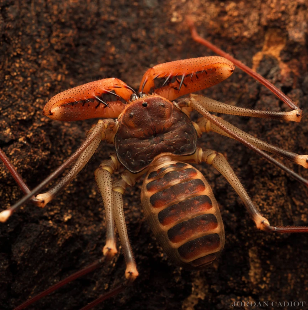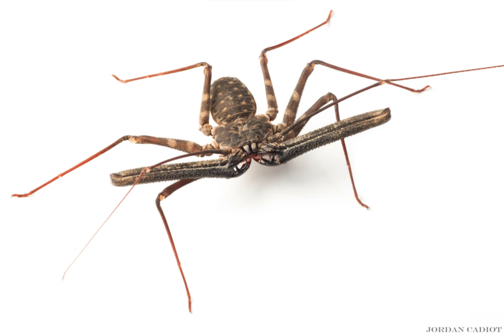 Un amblypyge ? Quel est ce drôle de nom à dormir debout ? En fait c’est un arachnide tout comme les araignées ou les scorpions à l’allure unique mais ne possèdent pas de venin et inofensif.