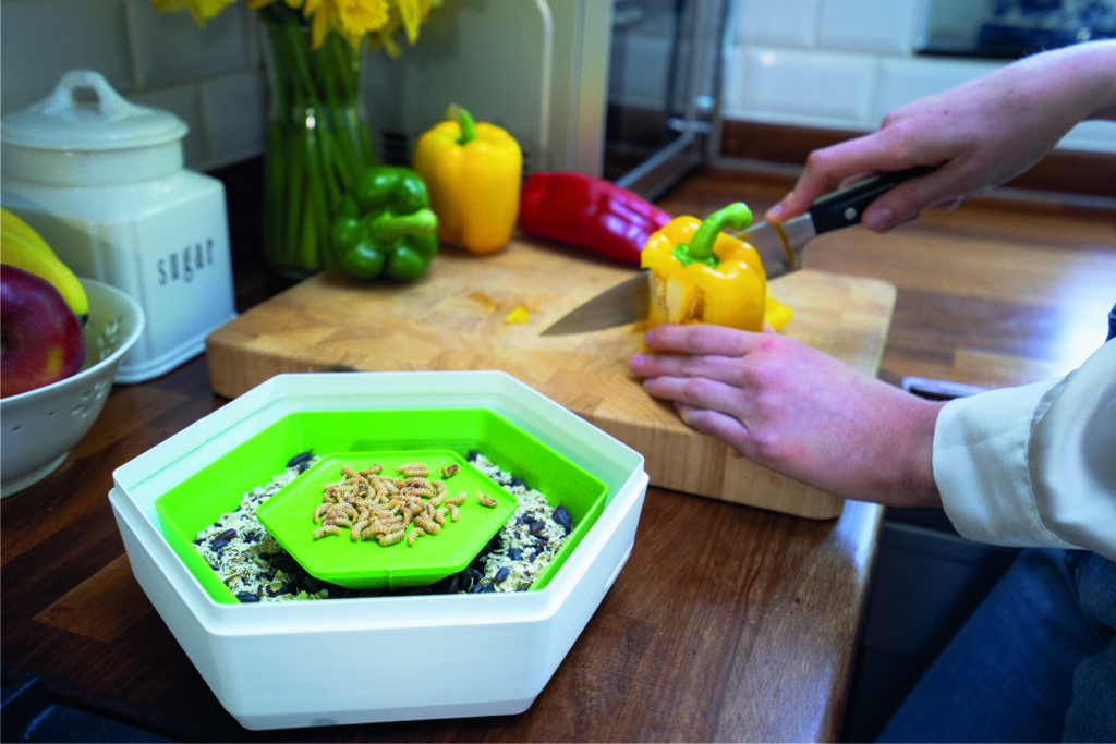 Sa conception en hexagone permet aux vers de farine d’avoir la sensation d’être dans un milieu plus grand car ils ne se retrouveront pas coincés dans les coins.